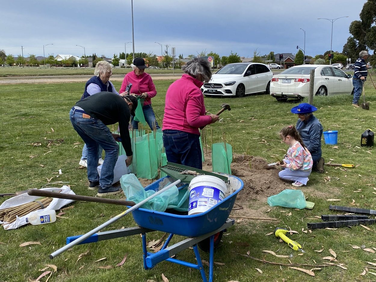 All hands were on deck for a tree planting and mulch spreading working bee at Rotary Centennial Park on Sunday 19th October, 2025.