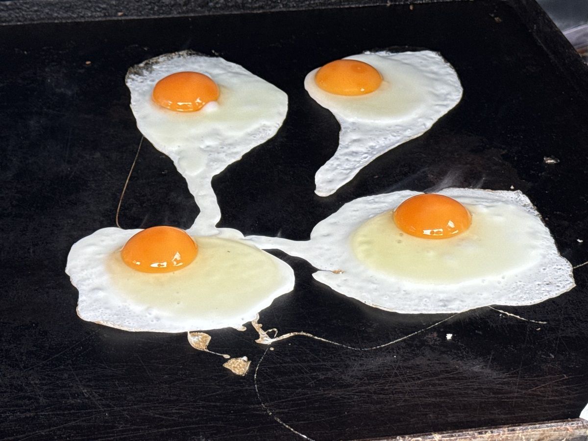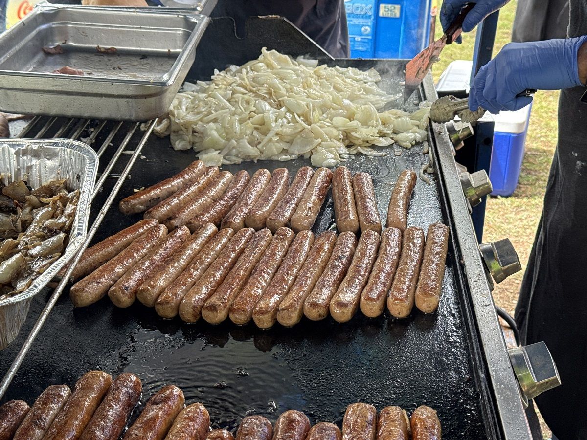 The weather was challenging with “four seasons in one day” being experienced but our sausages and egg and bacon rolls kept the large crowd warm and their hunger satisfied.