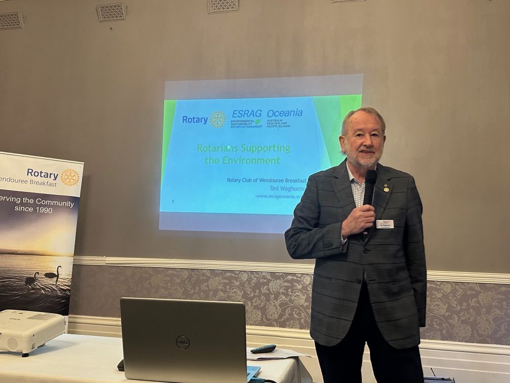 On Wed 2nd July '25 member Ted Waghorne kicked off the first meeting of the 2025/26 year with a talk on the Oceania chapter of ESRAG - Environmental Sustainability Rotary Action Group, which focuses on six main areas: