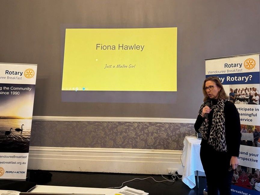 On Wed 24th Sept '25, members heard the talk titled ‘Just a Mallee Girl’, where new member Fiona Hawley told us she was born in Robinvale with her dad saying ‘Where’s my farmer’ and her mum calling Fiona her miracle baby for the rest of her mum’s life!