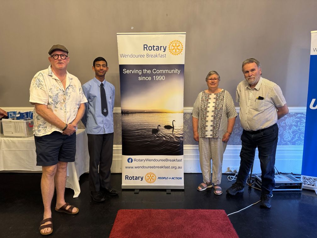Thank you to our club, Colleen and Jeff Stewart & Jairam received sponsorship to assist him attend the 2026 conference. Colleen and Jeff have had a 40+ year association with NYSF. Their daughter was sponsored by WBRC 35 years ago to attend NYSF and more recently their grandson attended NYSF. He was sponsored by another Rotary Club on the Mornington Peninsula.