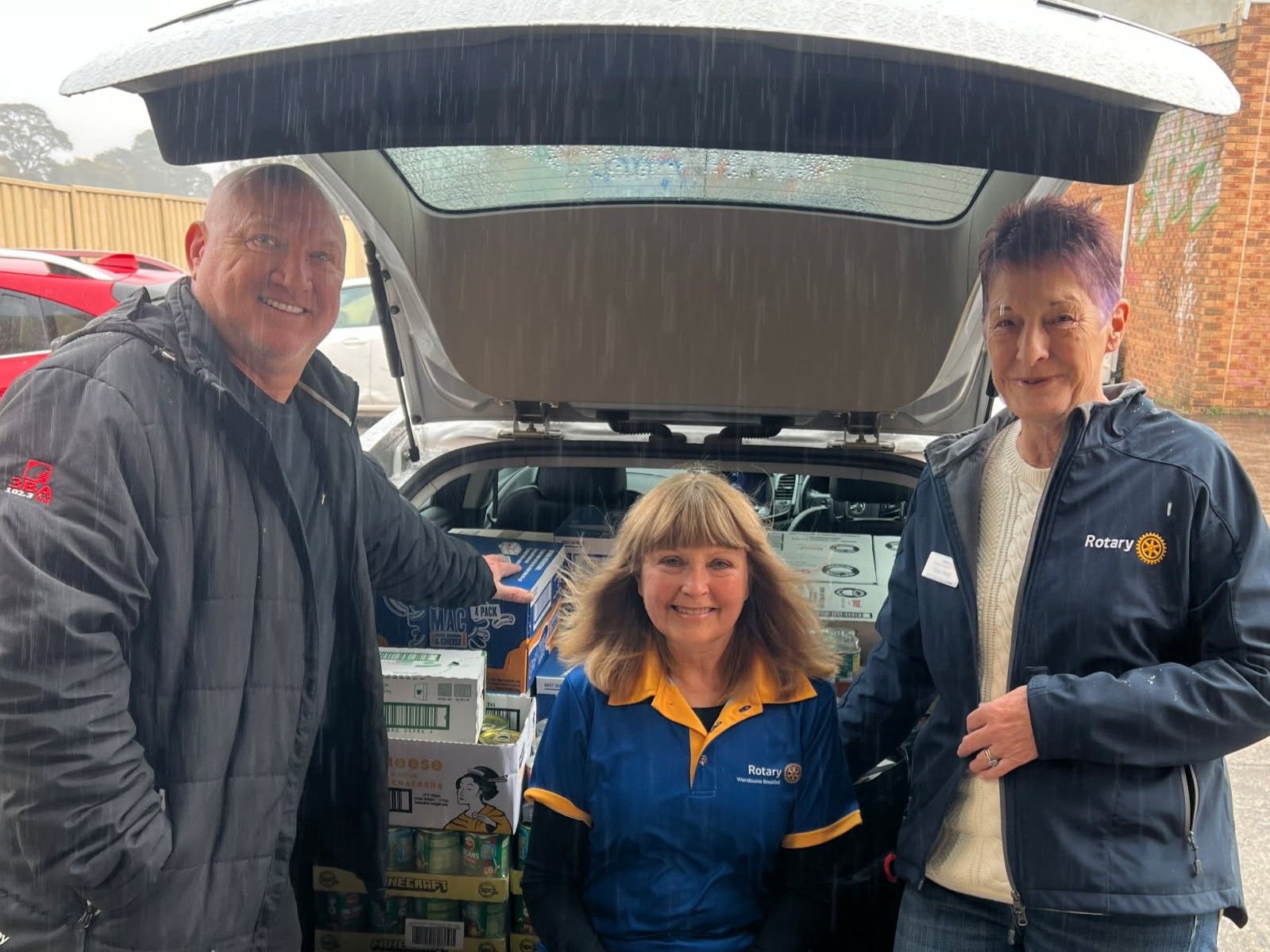 PT from 3BA with club members Leearne & Chez picking up food donated by our club