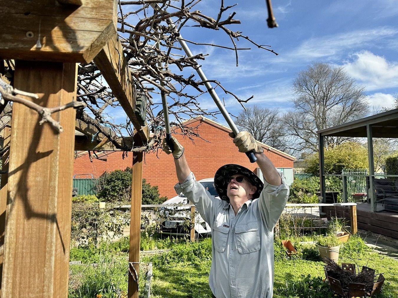 A call for help from the Ballarat North Neighbourhood House, via member Di Gow, resulted in some 16 members and friends conducting a garden blitz at premises in Crompton Street, Soldiers Hill.